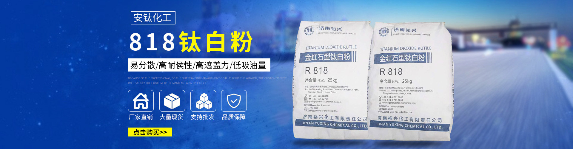 常州安鈦化工有限公司經(jīng)銷批發(fā)的鈦白粉、沉淀硫酸鋇、立德粉、滑石粉、高嶺土、炭黑、云母粉、彩色顏料、氫氧化鈣、硅微粉、氧化鐵紅、氧化鐵黑、金紅石型鈦白粉、銳鈦型鈦白粉、進口鈦白粉暢銷消費者市場,在消費者當(dāng)中享有較高的地位,公司與多家零售商和代理商建立了長期穩(wěn)定的合作關(guān)系。常州安鈦化工有限公司經(jīng)銷的鈦白粉、沉淀硫酸鋇、立德粉、滑石粉、高嶺土、炭黑、云母粉、彩色顏料、氫氧化鈣、硅微粉、氧化鐵紅、氧化鐵黑、金紅石型鈦白粉、銳鈦型鈦白粉、進口鈦白粉品種齊全、價格合理。常州安鈦化工有限公司實力雄厚,重信用、守合同、保證產(chǎn)品質(zhì)量,以多品種經(jīng)營特色和薄利多銷的原則,贏得了廣大客戶的信任。